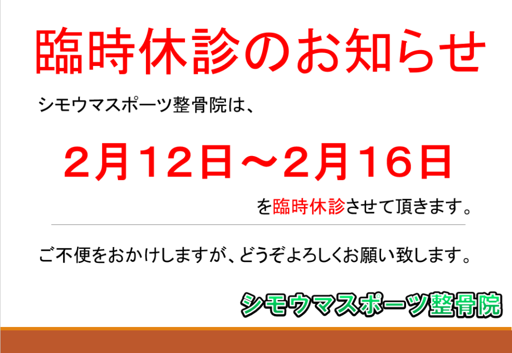 ご来院を予定されていた患者様には大変ご迷惑をおかけいたしますが、何卒ご理解のほどよろしくお願い申し上げます。